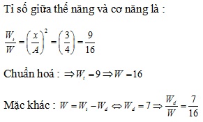 Một vật dao động điều hòa dọc theo trục Ox với biên độ A xung quanh vị trí cân bằng O. Khi vật ở có li độ x=0,75A thì tỉ số giữa động năng và cơ năng của vật bằng