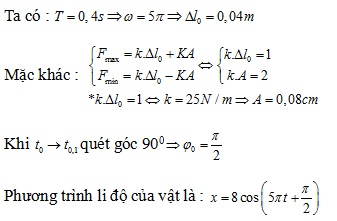 Một con lắc lò xo treo thẳng đứng gồm lò xo nhẹ có độ cứng k gắn với vật nhỏ có khối lượng m đang dao động điều hòa dọc theo trục Ox thẳng đứng mà gốc O ở ngang với vị trí cân bằng của vật. Lực đàn hồi mà là xo tác dụng lên vật trong quá trình dao động có đồ thị như hình dưới dây.