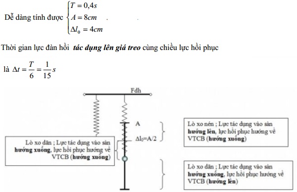 Một con lắc lò xo treo thẳng đứng gồm lò xo có khối lượng không đáng kể, độ cứng k = 50N/m . Khối lượng của vật treo là m = 200g . Vật đang nằm yên ở vị trí cân bằng thì được kéo thẳng đứng xuống dước để lò xo giãn tổng cộng 12cm rồi thả nhẹ cho nó dao động điều hòa. Lấy g = 10m/s2 và π2 = 10 . Thời gian lực đàn hồi tác dụng vào giá treo cùng chiều với lực hồi phục trong một chu kỳ dao động là