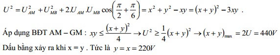 Đặt điện áp xoay chiều AB gồm đoạn mạch AM và MB mắc nối tiếp. Điện áp ở hai đầu đoạn mạch ổn định và có biểu thức u =220