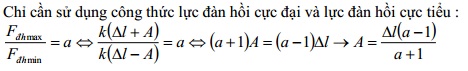 Một con lắc lò xo treo thẳng đứng gồm lò xo có khối lượng không đáng kể . Khi vật nằm cân bằng, lò xo gian một đoạn ∆l . Tỉ số giữa lực đàn hồi cực tiểu trong quá trình vật dao động là $${{{F_{hmax}}} \over {{F_{hmin}}}} = a$$ . Biên độ dao động của vật được tính bởi biểu thức nào dưới đây ?