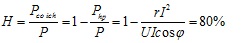 Một động cơ điện xoay chiều một pha hoạt động bình thường với điện áp hiệu dụng bằng 220V và dòng điện hiệu dụng bằng 1A. Biết điện trở trong của động cơ là r =35,2Ω và hệ số công suất của động cơ là 0,8. Hiệu suất của động cơ (tỉ số giữa công suất hữu ích và công suất tiêu thụ toàn phần) bằng
