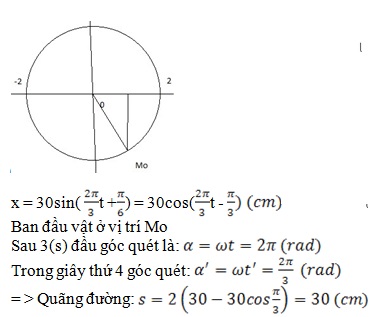 Một chất điểm dao động điều hòa trên trục Ox có phương trình dao động x = 30sin( ) ( x đo