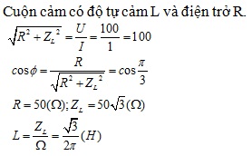 cos (100π t- π/3) (A). Độ tự cảm của cuộn dây bằng