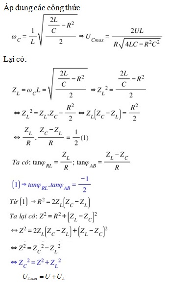 Mạch xoay chiều gồm điện trở thuần R, cuộn dây thuần cảm có độ tự cảm L, tụ điện có điện dung C mắc nối tiếp. Đặt vào hai đầu mạch một điện áp xoay chiều u = UÖ2coswt (V) (trong đó U không đổi, w thay đổi được). Điều chỉnh w để điện áp hiệu dụng giữa hai bản tụ điện cực đại và giá trị cực đại là Ucmax , khi đó điện áp hiệu dụng hai đầu cuộn cảm thuần là UL. Ta có hệ thức sau
