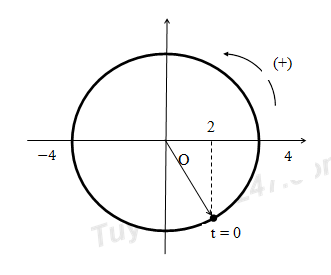 rad/s. Chọn gốc tọa độ trùng với vị trí cân bằng của vật. Biết rằng tại thời điểm ban đầu vật đi qua li độ x = 2cm với vận tốc v = 20