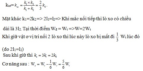 Hai lò xo nhẹ ghép nối tiếp có độ cứng lần lượt là k1 = 2k0, k2 = k0. Đầu còn lại của lò