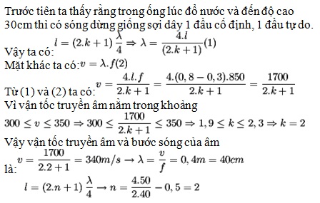Một âm thoa có tần số 850Hz được đặt sát miệng một ống nghiệm hình trụ đáy kín đặt