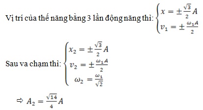 Một con lắc lò xo nằm ngang có vật nhỏ khối lượng m dao động điều hòa với biên độ A. Khi vật đến vị trí có thế năng bằng 3 lần động năng thì một vật nhỏ khác m (cùng khối lượng với m) rơi thẳng đứng và dính chặt vào m. Khi đó 2 vật tiếp tục dao động điều hòa với biên độ: