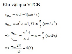 Vận tốc của một vật dao động điều hoà khi đi quan vị trí cân bằng là 1cm/s và gia tốc của