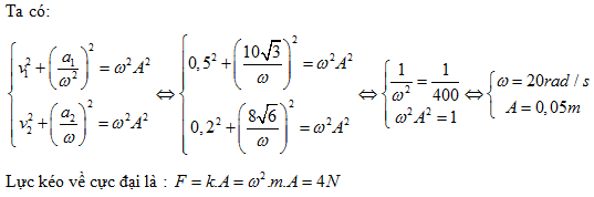 m/s2 và vận tốc v1= 0,2m/s. Lực kéo về tác dụng lên vật có độ lớn cực đại là: