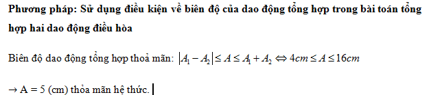 Một vật thực hiện đồng thời hai dao động điều hòa cùng phương, cùng tần số có biên độ lần lượt là 8 cm và 12 cm. Biên độ dao động tổng hợp có thể là