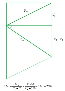 (V). Khi điện áp hiệu dụng trên tụ điện đạt giá trị cực đại thì điện áp hiệu dụng trên cuộn dây là 200V. Gía trị UCmax là: