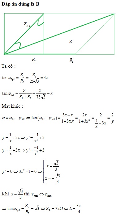 . Điều chỉnh giá trị của L cho đến khi hiệu điện thế tức thời giữa 2 đầu đoạn mạch chứa R2 và L lệch pha cực đại so với hiệu điện hai đầu đoạn mạch. Gía trị của độ tự cảm L lúc đó là: