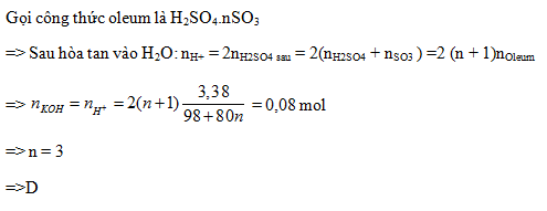 Hoà tan 3,38 gam oleum vào nước được dung dịch X. Để trung hoà dung dịch X cần 800ml dung dịch KOH 0,1 M. Công thức phân tử oleum đã dùng là