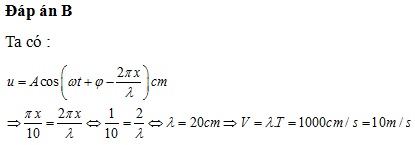 Phương trình của một sóng ngang truyền trên một sợi dây là , trong đó u, x đo bằng cm, t đo