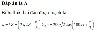 , t tính bằng giây. Biểu thức điện áp xoay chiều giữa hai đầu đoạn mạch này là