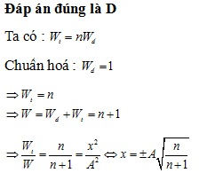 Vật dao động điều hòa với biên độ A . khi thế năng gấp n lần động năng, vật có li độ