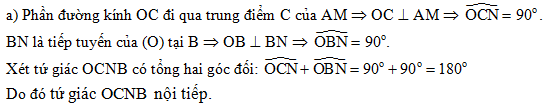 Cho nửa đường tròn tâm O đường kính AB = 2R. Điểm M di chuyển trên nửa đường tròn (M khác A và B). C là trung điểm của dây cung AM. Đường thẳng d là tiếp tuyến với nửa đường tròn tại B. Tia AM cắt d tại điểm N. Đường thẳng OC cắt d tại E.