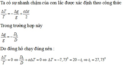 Một con lắc đồng hồ có hệ số nở dài của dây treo con lắc . Vật nặng có khối lượng