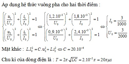 Mạch dao động điện tử LC lí tưởng dao động điều hòa, cho biết độ tự cảm cuộn dây là L = 5