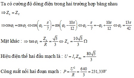 lần lượt vào hai đầu đoạn mạch nối tiếp RL và RC thì cường độ dòng điện trong mạch tương ứng là