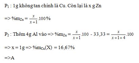 - Phần 2 : Luyện thêm 4g Al thì được hợp kim X trong đó hàm lượng % của Zn trong Y giảm 33,33% so với X.