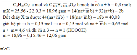 Hỗn hợp X chứa 3 axit cacboxylic đều đơn chức mạch hở gồm 1 axit no và 2 axit không no đều có một liên kết đôi (C=C). Cho m gam X tác dụng với tác dụng vừa đủ với 150 ml dung dịch NaOH 2M , thu được 25,56g hỗn hợp muối. Đốt cháy hoàn toàn m gam X , hấp thụ toàn bộ sản phẩm cháy bằng dung dịch NaOH dư , không lượng dung dịch tăng lên thêm 40,08g. Tổng khối lượng của 2 axit cacboxylic không no trong m gam X là :