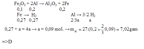 (Biết các phản ứng đều xảy ra hoàn toàn ). Giá trị của m là :