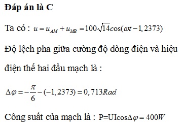 biểu thức điện áp trên các đoạn mạch AM, MB lần lượt là uAM = 100