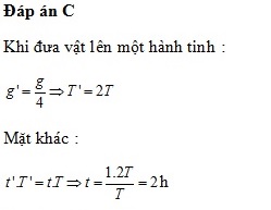 lực hấp dẫn mà nó chịu trên mặt trái đất. Giả sử một đồng hồ quả lắc chạy rất chính xác trên mặt trái đất được đưa lên hành tinh đó . Khi kim phút của đồng hồ này quay được một vòng thì thời gian trong thực tế là :