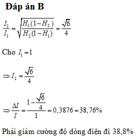 Điện năng từ nhà máy điện được đưa đến nơi tiêu thụ nhờ các dây dẫn , tại nơi tiêu thụ cần một công suất không đổi. Ban đầu hiệu suất tải điện là 90% . Muốn hiệu suất tải điện là 96% thì phải giảm bớt cường độ dòng điện trên dây tải đi bao nhiêu phần trăm so với cường độ dòng điện lúc đầu?