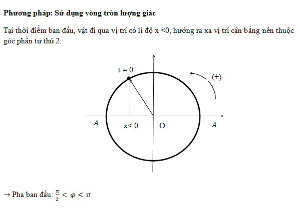 Một vật nhỏ dao động theo phương trình x = Acos(ω t + φ) (cm). tại thời điểm ban đầu, vật đi qua vị trí có li độ x <0, hướng ra xa vị trí cân bằng. Giá trị của φ thỏa mãn: