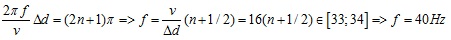 Một sóng ngang truyền trên sợi dây rất dài với tốc độ truyền sóng là 4m/s và tần số sóng có giá trị từ 33Hz đến 43Hz, biết hai phần tử tại hai điểm trên dây cách nhau 25cm luôn dao động ngược pha nhau. Tần số sóng trên dây là: