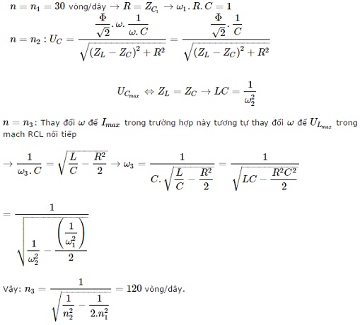 Một máy phát điện xoay chiều một pha có roto là một nam châm điện có một cặp cực quay đều với tốc độ n (vòng/s). Một đoạn mạch RLC nối tiếp được mắc vào hai cực của máy. Khi roto quay với tốc độ = 30(vòng/s) thì dung kháng của tụ điện bằng R. khi roto quay với tốc độ = 40(vòng/s) thì điện áp hiệu dụng ở hai đầu tụ điện đạt giá trị cực đại. Bỏ qua điên trở thuần ở các cuộn dây phần ứng. Để cường độ dòng điện hiệu dụng qua mạch đạt giá trị cực đại thì roto phải quay với tốc độ bằng