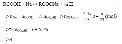 Cho a(g) một axit đơn chức phản ứng vừa đủ với 0,5a g Na. Tính % khối lượng oxi trong axit: