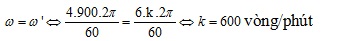 Một máy phát điện xoay chiều một pha có 4 cặp cực, rôto quay với tốc độ 900 vòng/phút. Máy phát điện thứ hai có 6 cặp cực. Để dòng điện do các máy phát ra hòa được vào cùng một mạng điện thì máy phát điện thứ hai phải có tốc độ quay của rôto là: