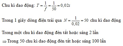 Một đèn nêon đặt dưới điện áp xoay chiều có giá trị hiệu dụng 220 V và tần số 50 Hz. Biết đèn sáng khi điện áp giữa hai cực không nhỏ hơn 155 V. Trong một giây đèn sáng lên hoặc tắt đi bao nhiêu lần?