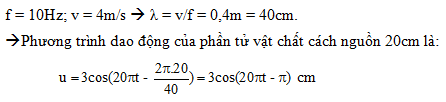 Nguồn phát sóng dao động theo phương trình: u=3cos20πt (cm). Vận tốc truyền sóng là 4 m/s. Bỏ qua