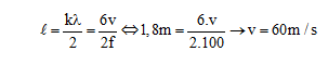 Trên một sợi dây đàn hồi dài 1,8 m, hai đầu cố định, đang có sóng dừng với 6 bụng sóng. Biết sóng truyền trên dây có tần số 100 Hz. Tốc độ truyền sóng trên dây là: