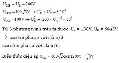 UMB= 2UAB =200(V). Biểu thức điện áp giữa hai đầu mạch AB là: