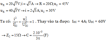 V thì điện áp tức thời 2 đầu tụ C là 30V. Điện dung của tụ C là: