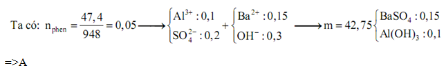 Cho 47,4 gam phèn nhôm – Kali (K2SO4.Al2(SO4)3.24H2O) vào nước thu được dung dịch X. Cho 200 ml dung dịch Ba(OH)2 0,75M vào dung dịch X thu được m gam kết tủa. Giá trị của m là ?