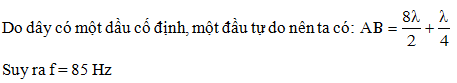 Một sợi dây đàn hồi AB dài 1,2 m đầu A cố định, đầu B tự do, dao động với tần số f và trên dây có sóng lan truyền với tốc độ 24 m/s. Quan sát sóng dừng trên dây người ta thấy có 9 nút. Tần số dao động của dây là