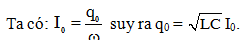 Một mạch dao động gồm cuộn dây thuần cảm L và tụ điện C. Nếu gọi I0 là cường dòng điện cực đại trong mạch, thì hệ thức liên hệ điện tích cực đại trên bản tụ điện q0 và I0 là
