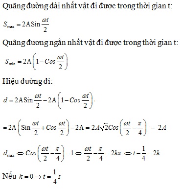 Một chất điểm dao động điều hòa với phương trình x = Acos2πt (t đo bằng s). Biết hiệu giữa quãng đường lớn nhất và nhỏ nhất mà chất điểm đi được cùng trong một khoảng thời gian ∆t đạt cực đại. Khoảng thời gian ∆t bằng: