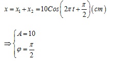 Hai dao động điều hòa có phương trình dao động lần lượt là x1 = 5cos(2πt+ π/6) (cm) và x2 =