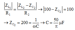 H.Đặt vào hai đầu AB một điện áp xoay chiều có giá trị hiệu dụng không đổi, tần số f = 50 Hz. Để UAB = UAM + UMB thì điện dung của tụ bằng