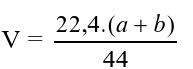 Dẫn V lít CO2 (đktc) vào bình chứa dd Ca(OH)2 thu được a g kết tủa. Khối lượng dd tăng b g. Biểu thức liên hệ giữa V, a, b là: