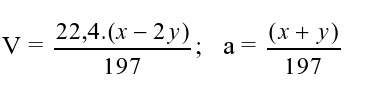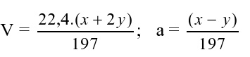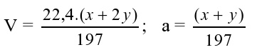 Dẫn V lit CO2 (đktc) vào bình chứa 1 lit dd Ba(OH)2 a M thì thấy xuẩt hiện x g ↓ trắng, đun nóng dd sau phản ứng thì tiếp tục thu được y g ↓ trắng. Biểu thức liên hệ giữa V với x và y, giữa a với x và y là: